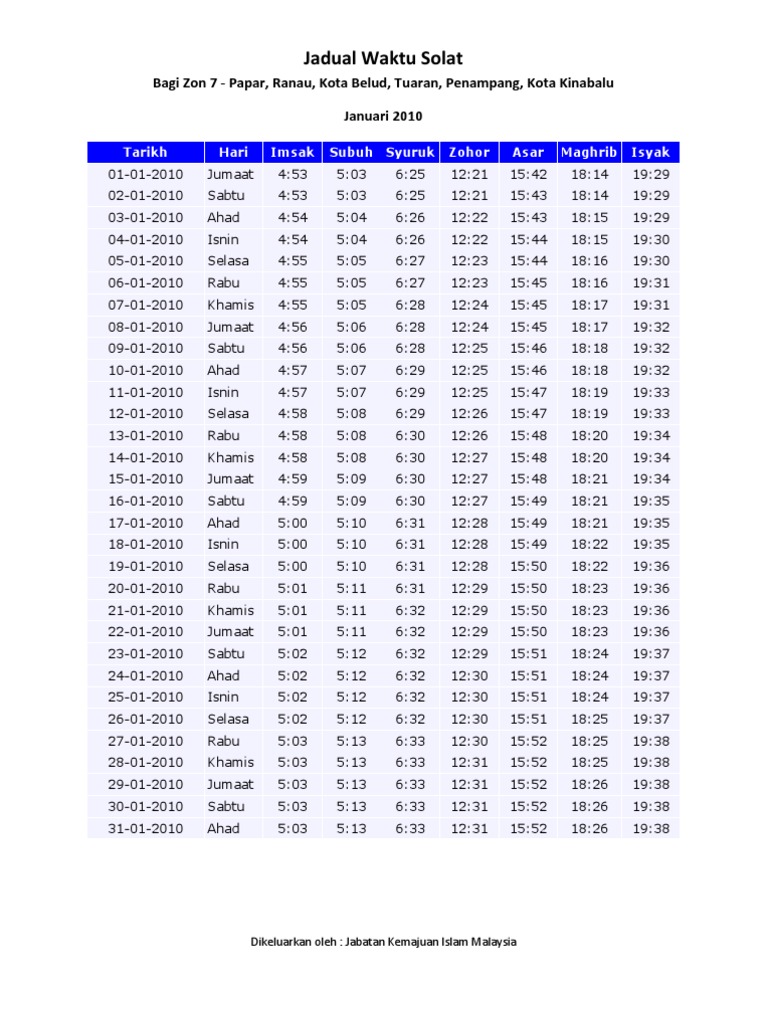 Jadual Waktu Solat 1434 Zon 7 Pdf