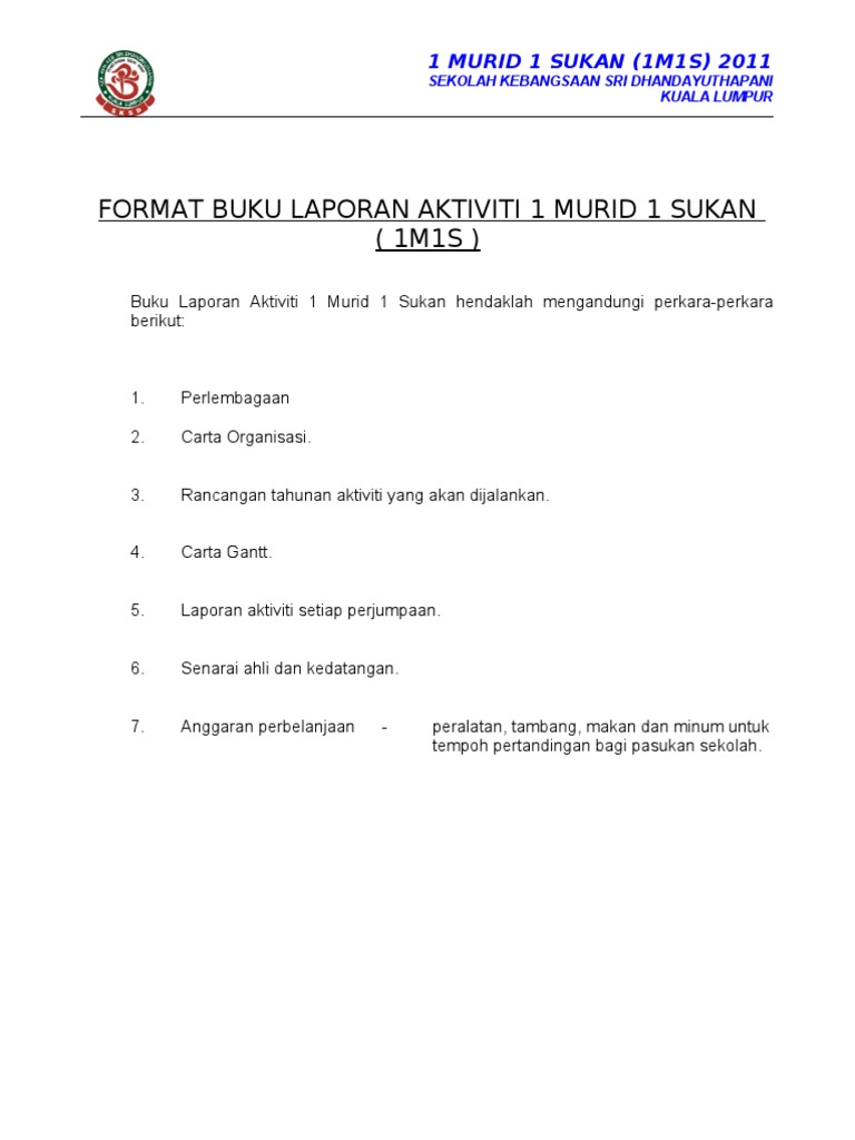 1 Murid 1 Sukan Buku Laporan Pdf